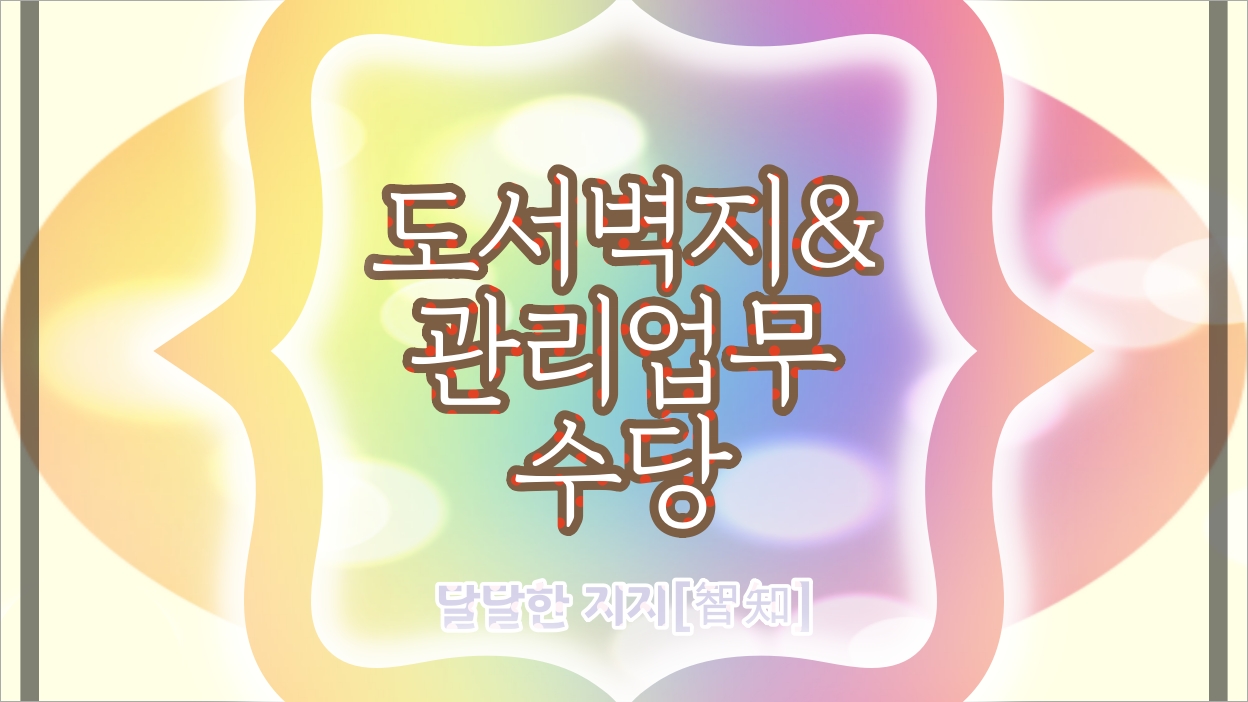 안녕하세요. 달지입니다. 이번 포스팅에서는 교원의 도서벽지수당, 관리업무수당 지급기준과 지급액에 대해 알아보도록 하겠습니다.