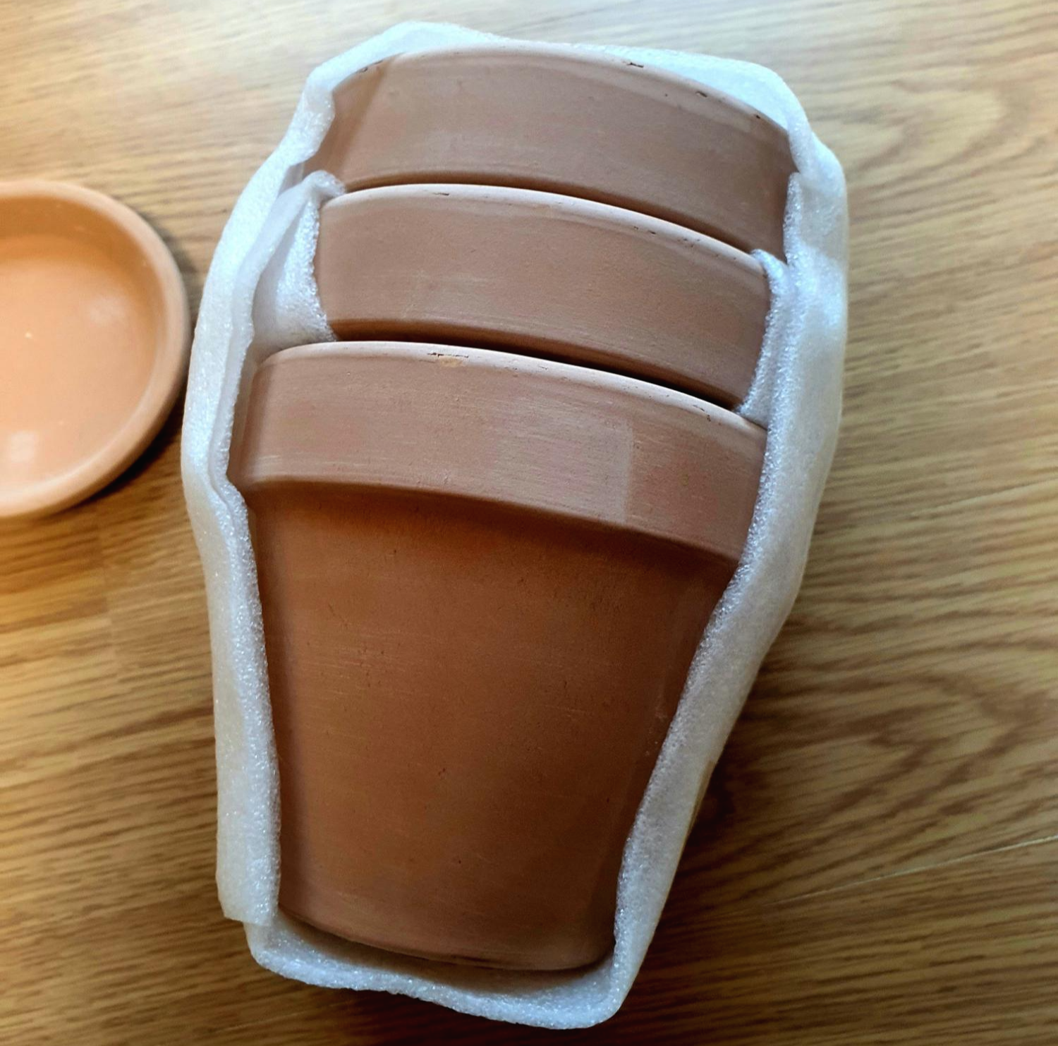 저는 첫 구매로 13cm 사이즈 토분과 받침대=세트 3개를 구입했었습니다. 보시다시피 포장은 아주 꼼꼼히 잘 되어있었어요. 토분은 충격에 약하기 때문에 꼼꼼하게 포장이 되어있었고, 그렇기 때문에 택배 상자 크기도 커질 수밖에 없는 건 당연하겠더라고요.