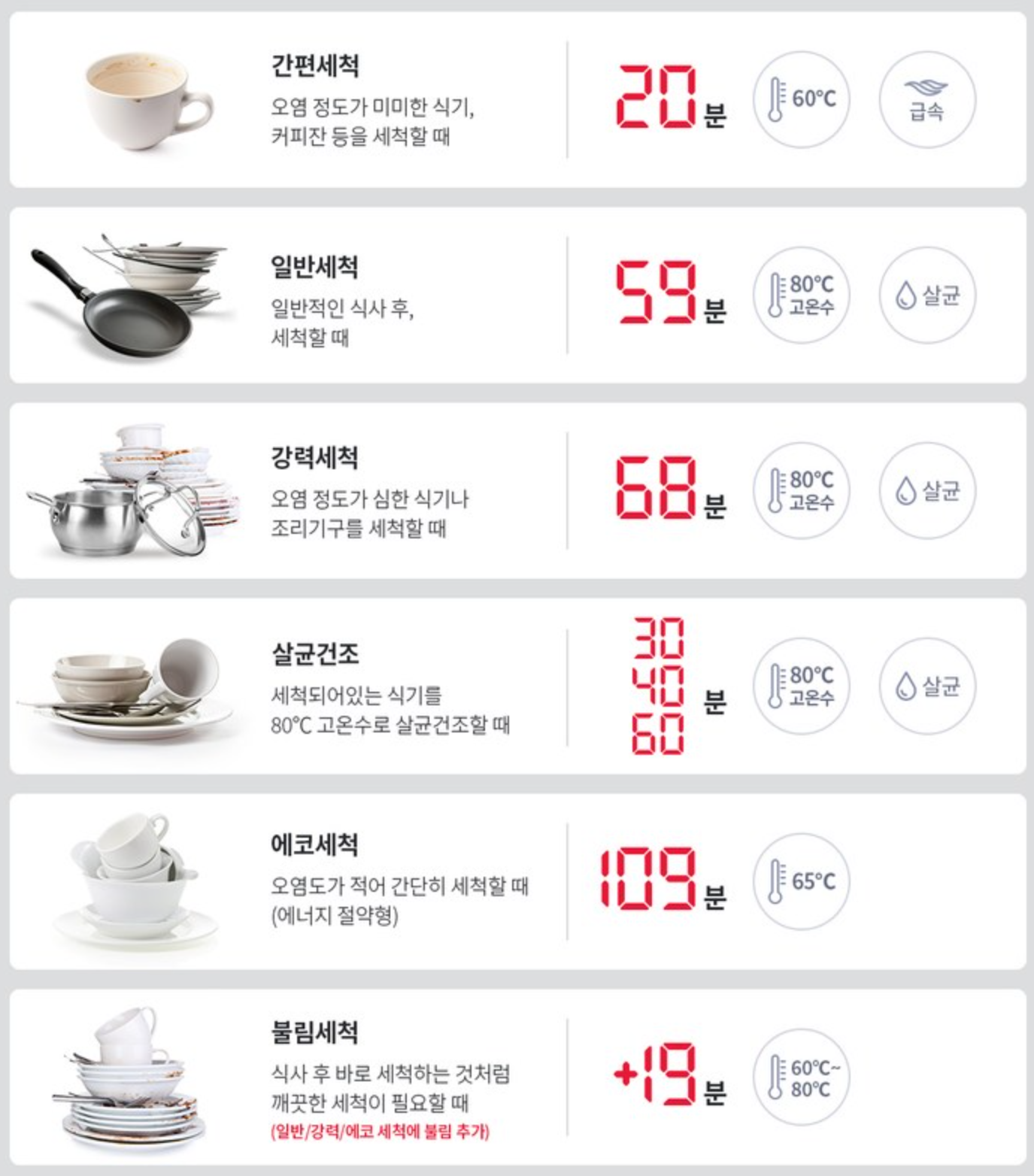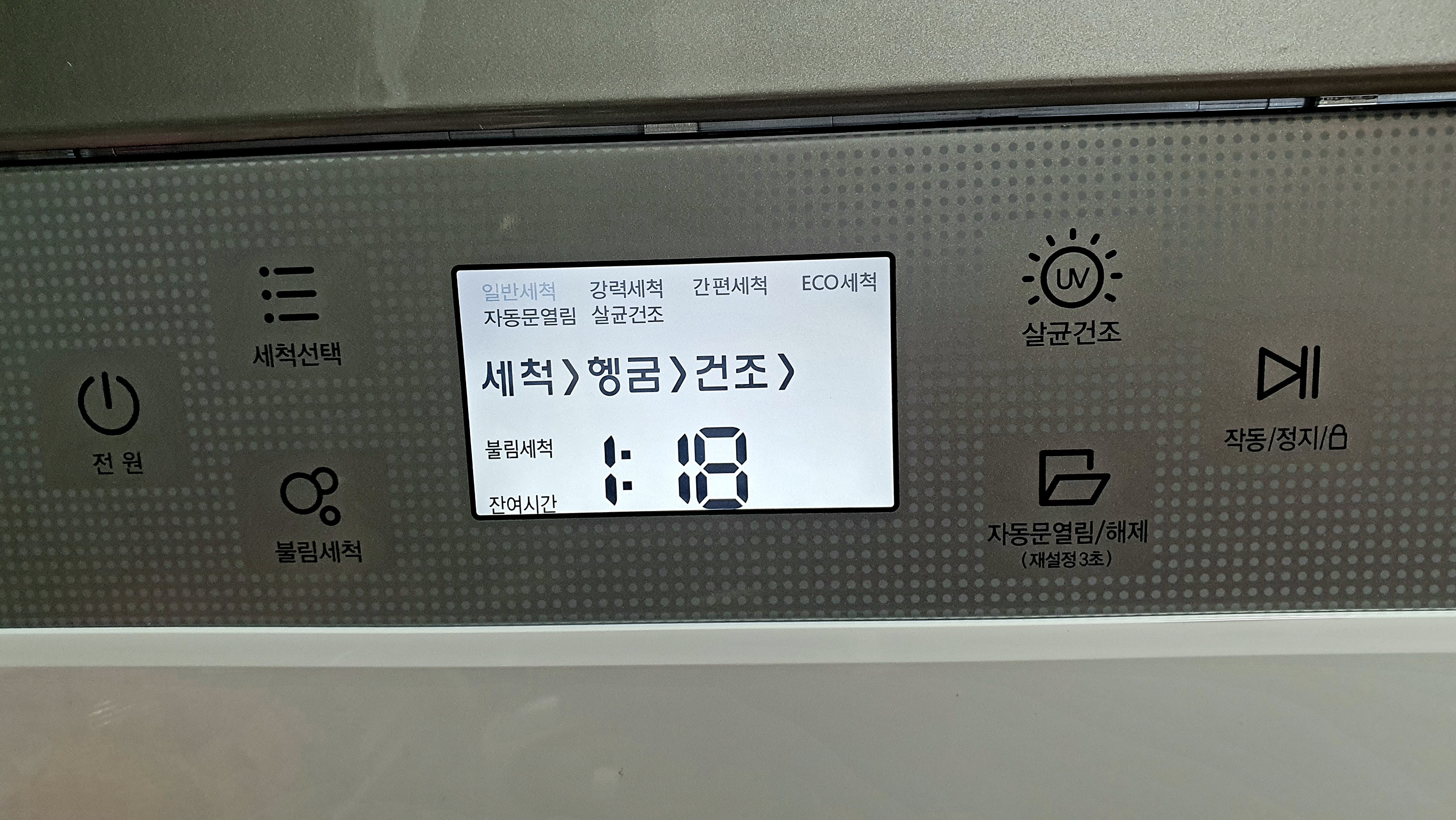 저는 보통 일반세척 - 불림세척 추가하여 1시간 18분 코스로 돌립니다.