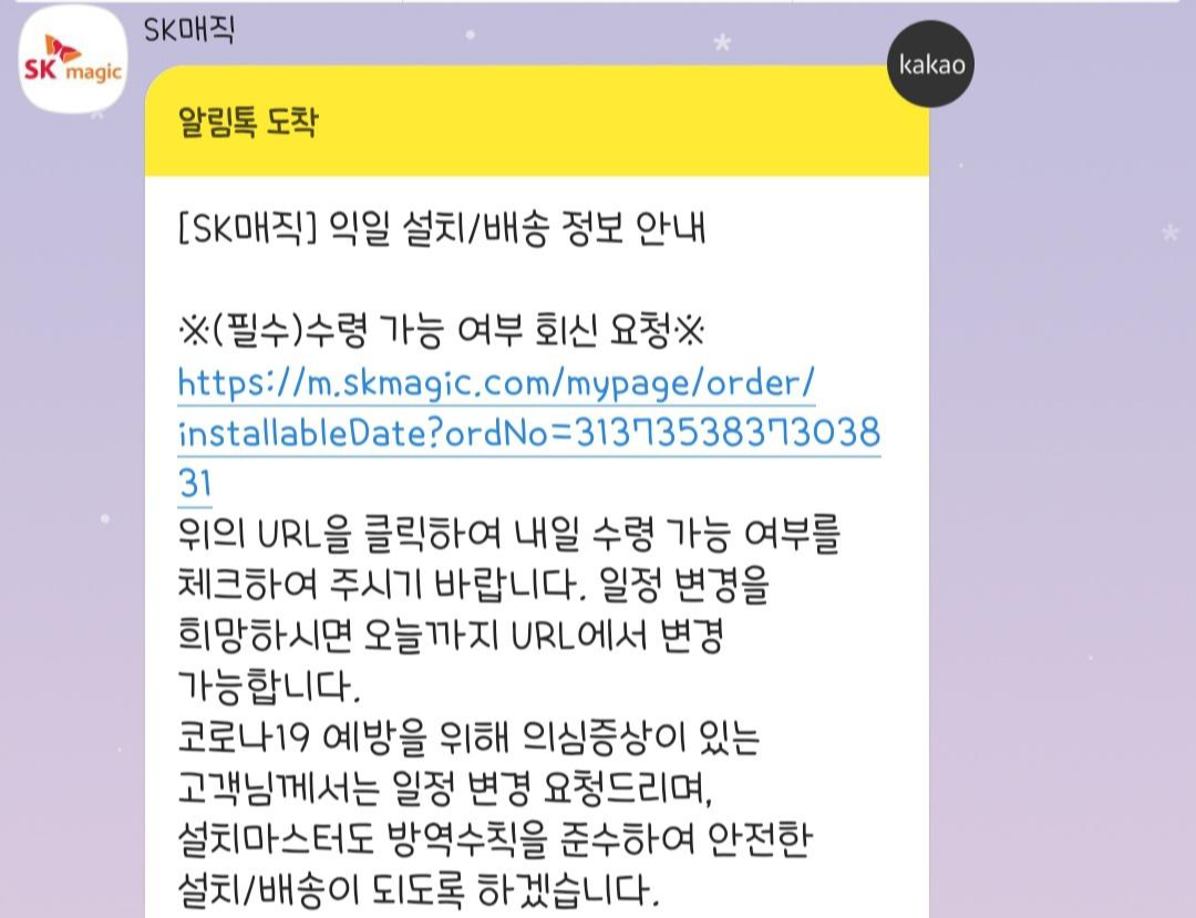 저는 금요일에 주문했었는데 바로 카톡이 와서는, 주말 지나 월요일에 방문한다고,