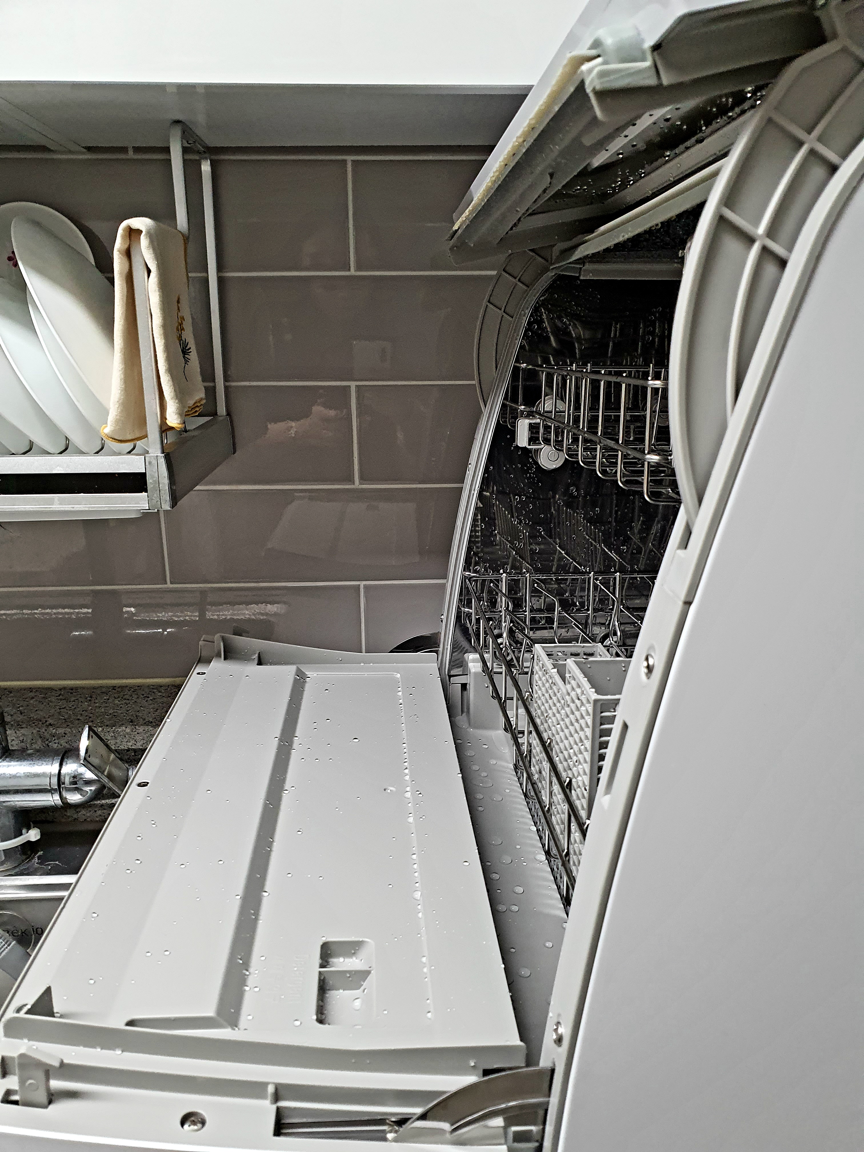 식기세척기 자리 세팅 시 위 사진처럼 2층까지 모두 뺄 수 있는 공간이 있어야 합니다.