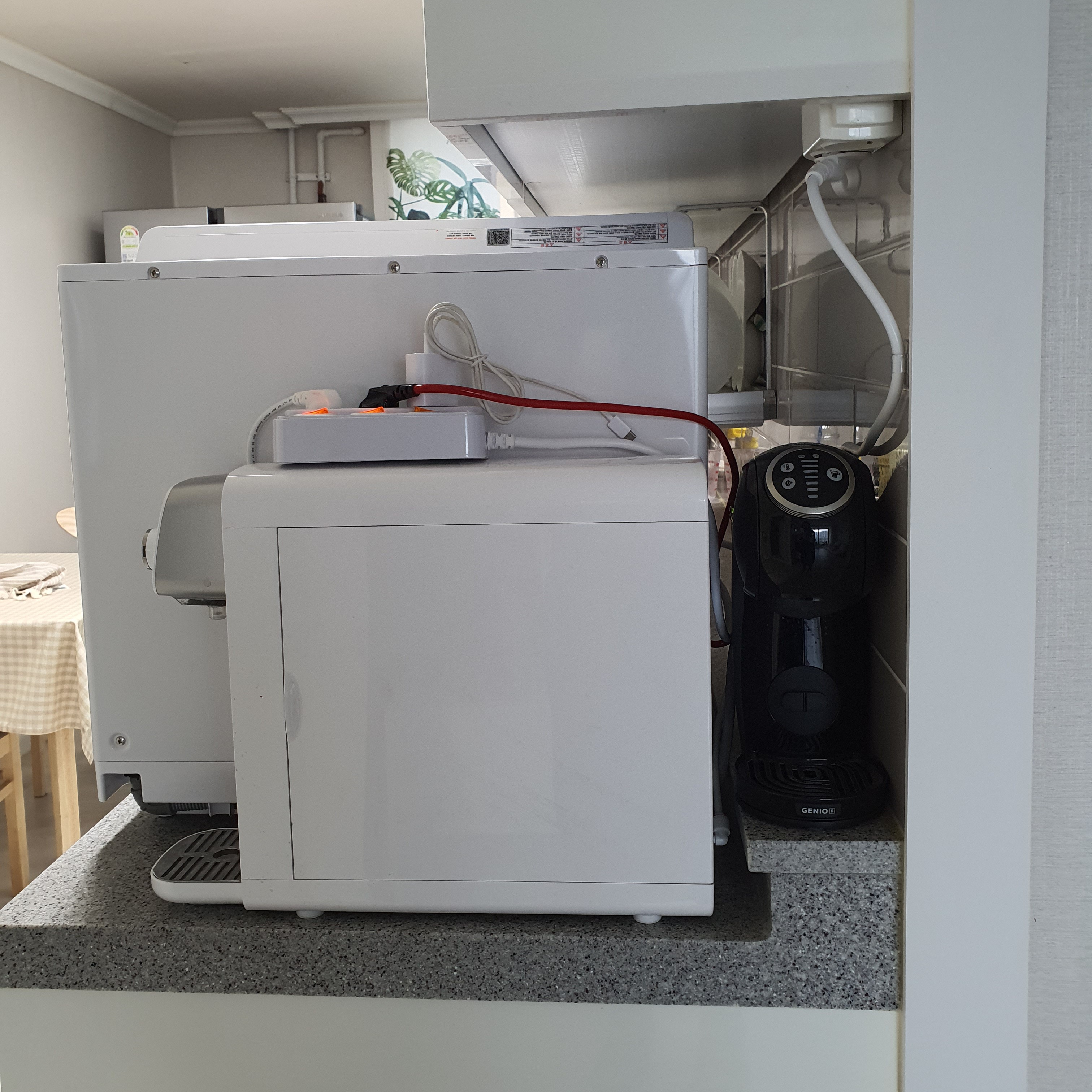 미리 식기세척기 자리를 줄자로 재어, 생각해뒀던 자리에 설치 요청을 드렸고요.