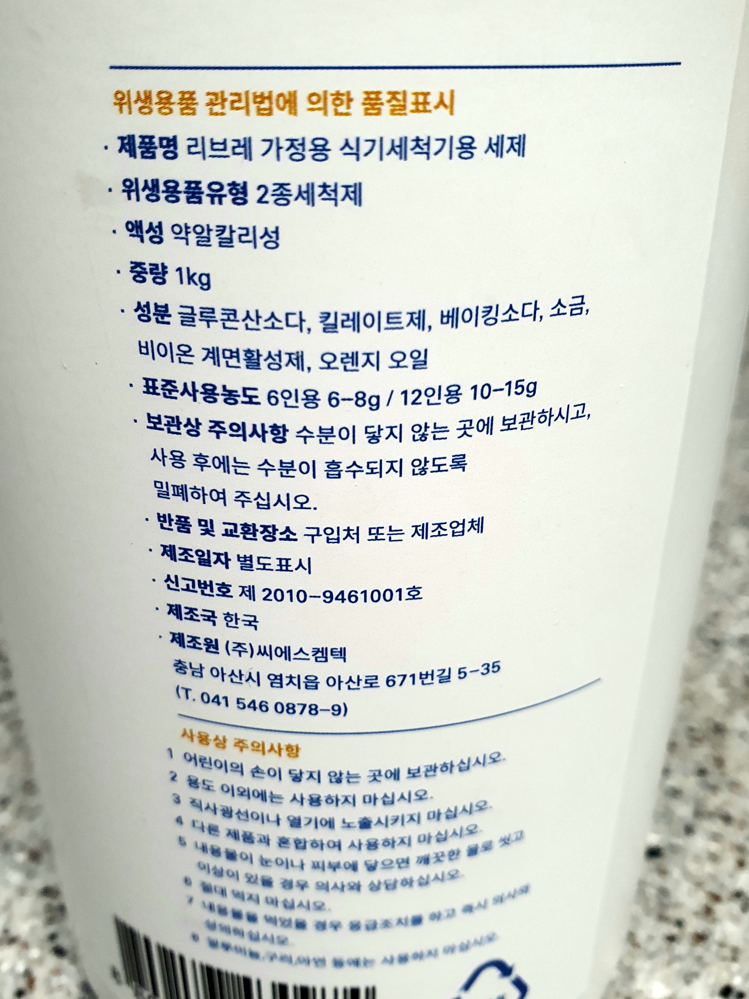 (그래서인가.. 세척 후 식기들이 굉장히 뽀드득거립니다, 1종세척제라면 있을 수 없는 일)