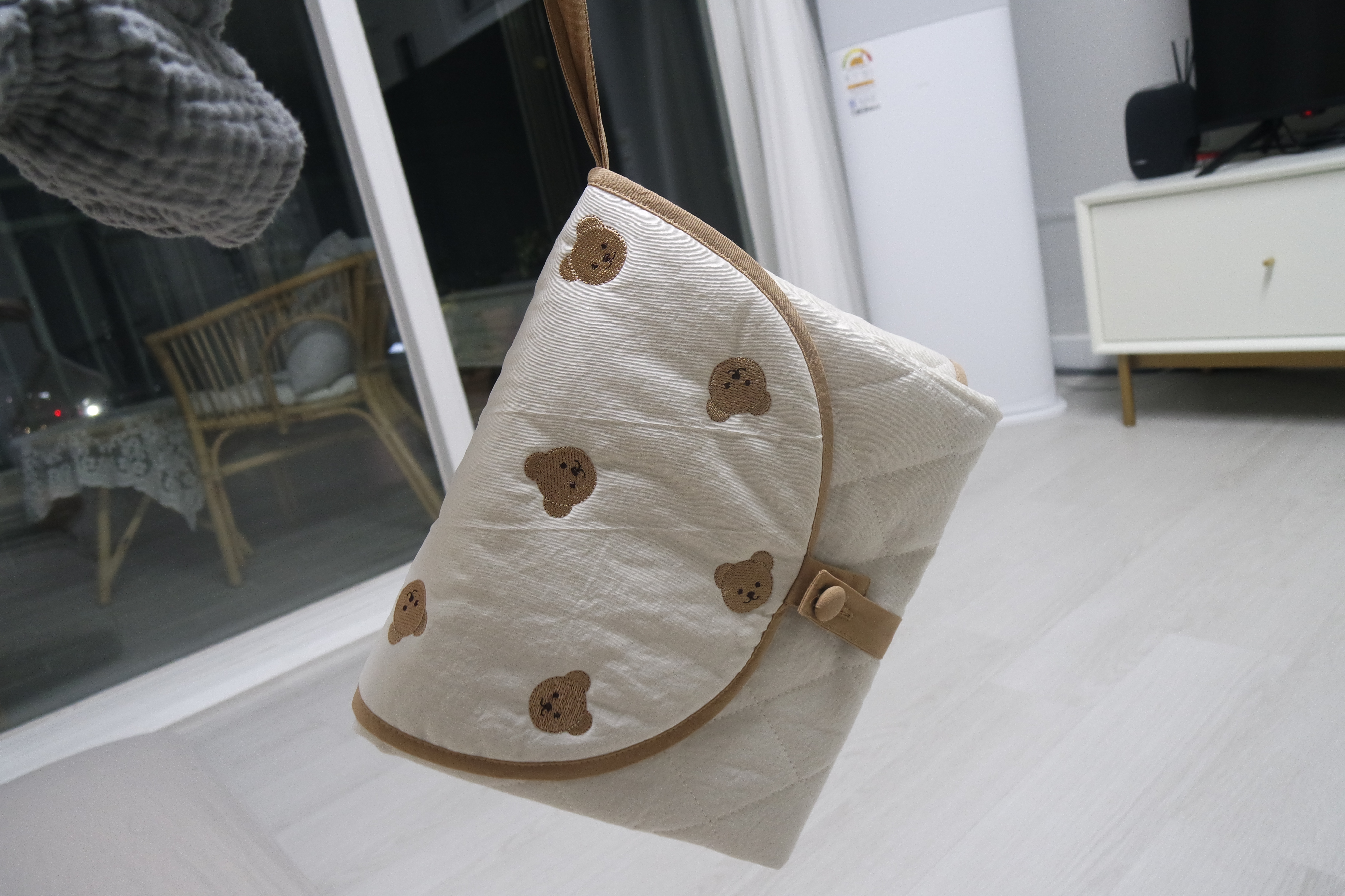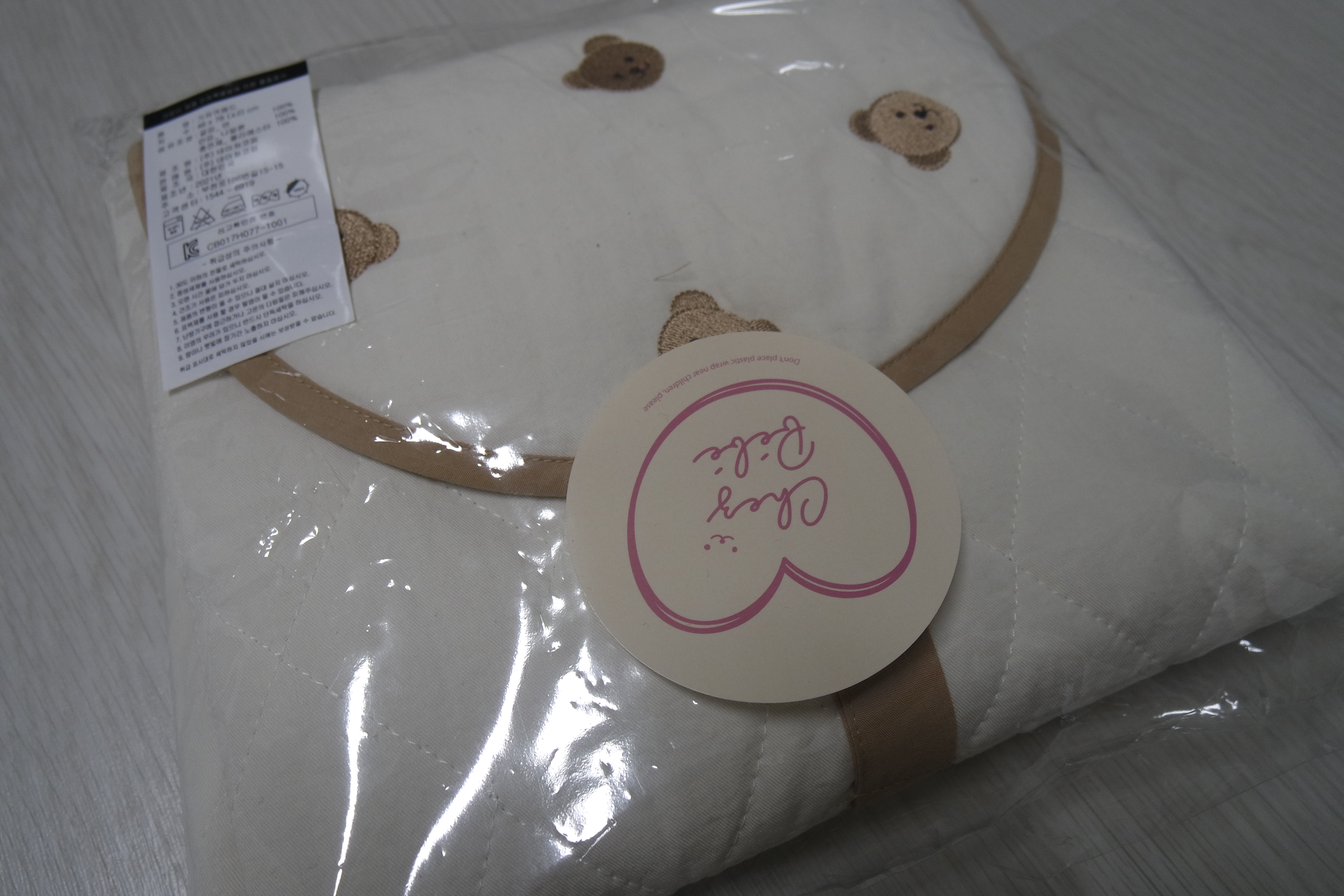 며칠 전 육아 선배로부터 쉐베베 쉐고미 시그니쳐 자수 휴대용 기저귀 패드를 선물로 받았습니다 > <