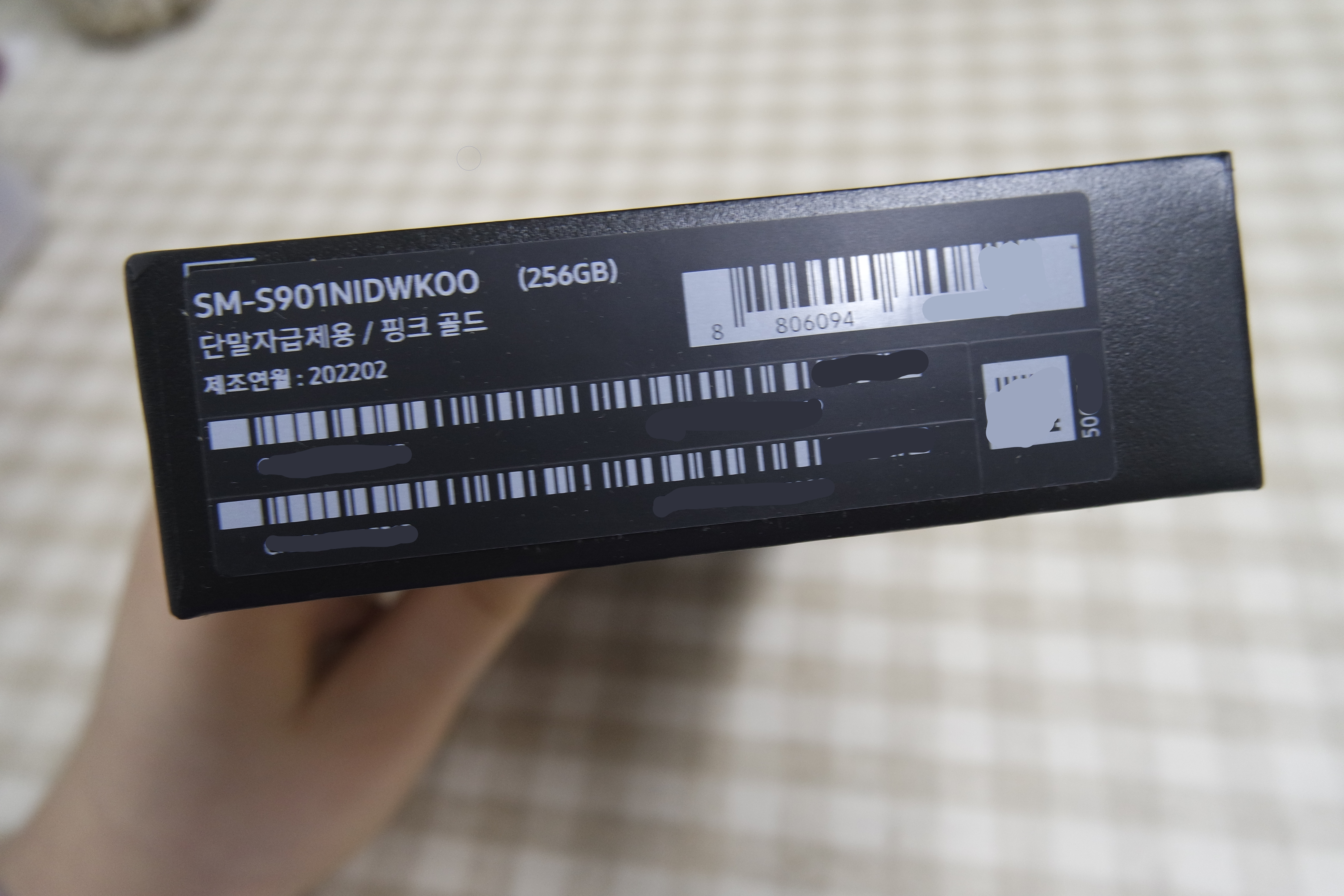 단말자급제용, 핑크골드 색상, 제조연월은 2022년 2월입니다.