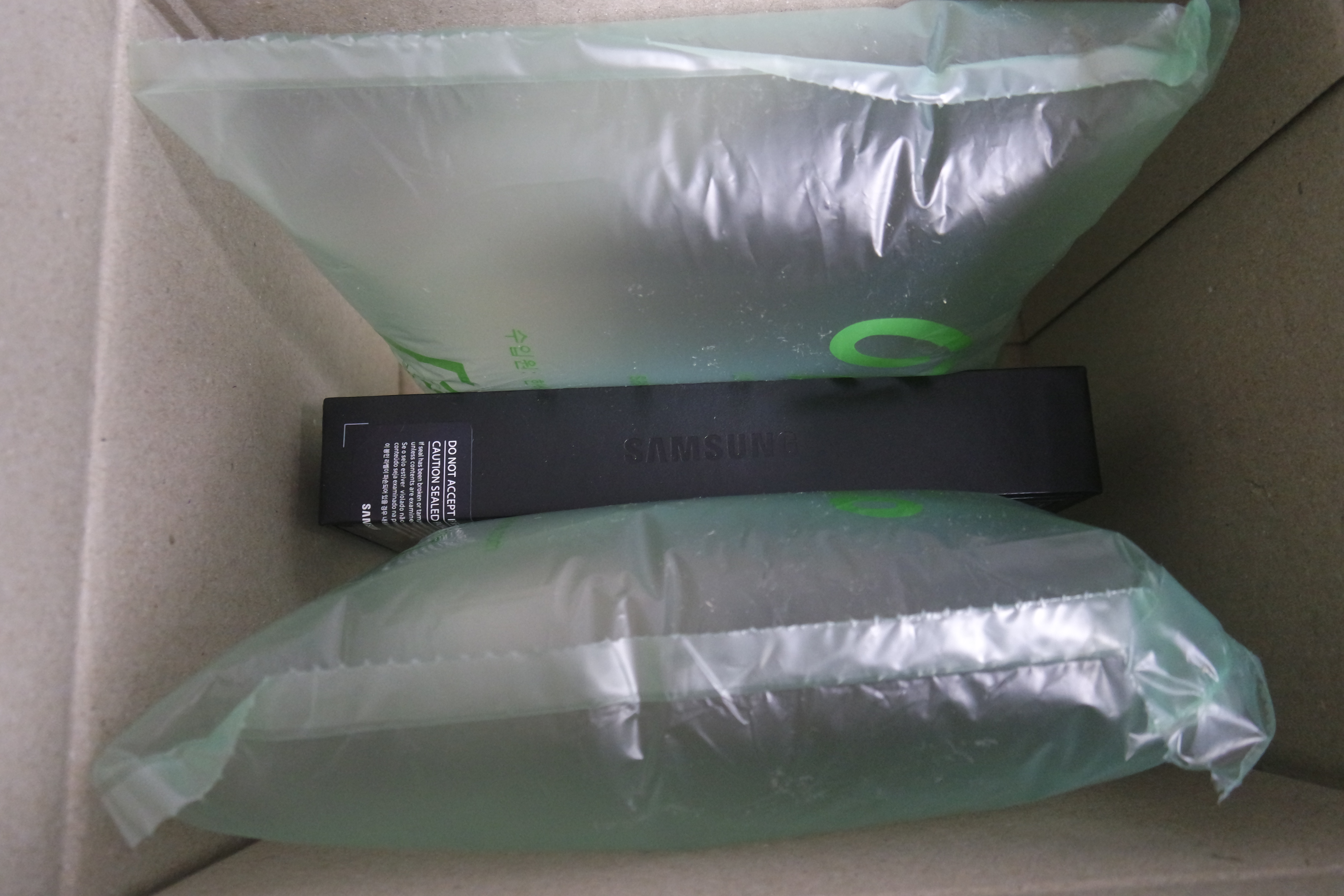 쿠팡전용 택배박스에 충전제와 함께 들어있는 S22입니다.