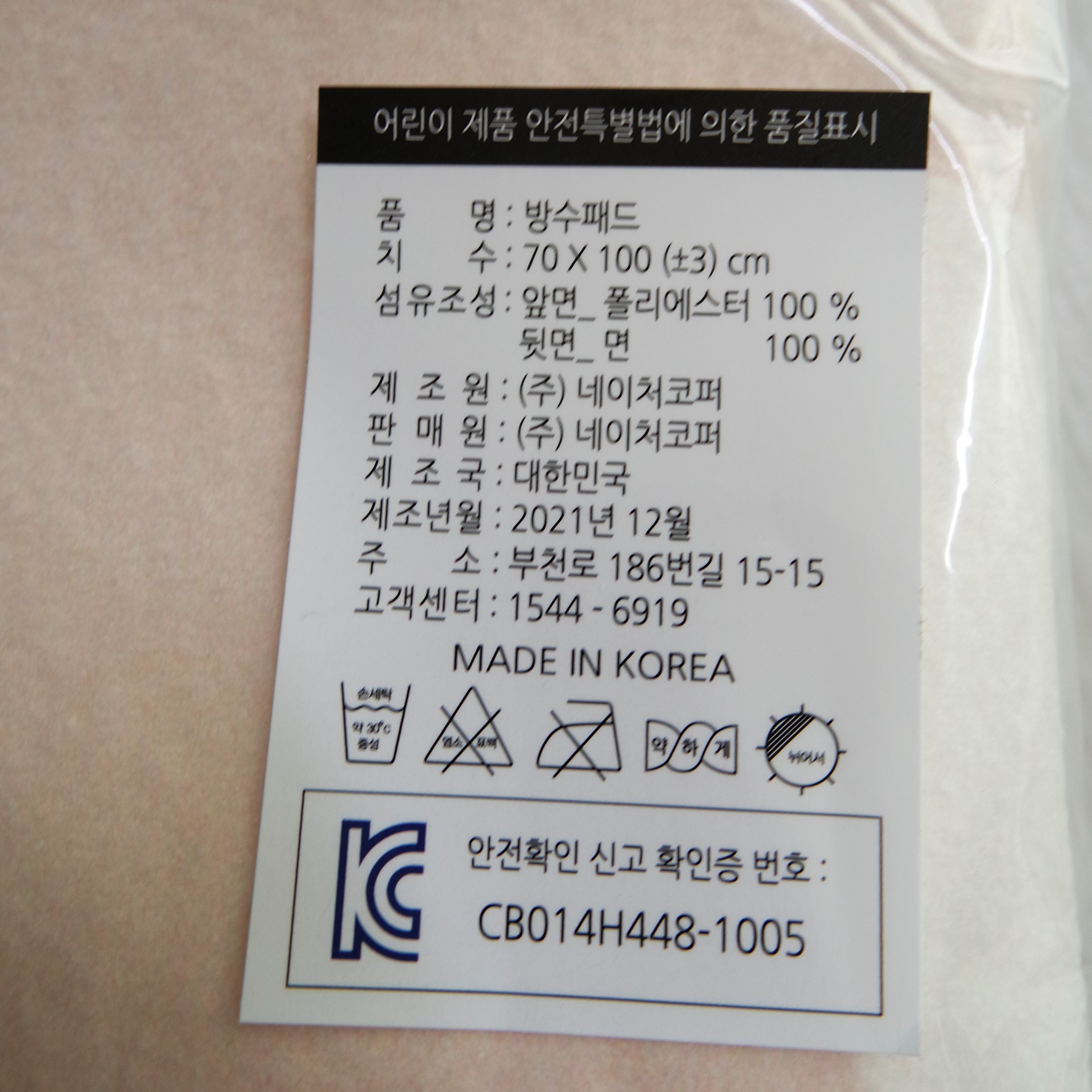 쉐베베 방수패드 품질 보증 기간은 1년입니다.