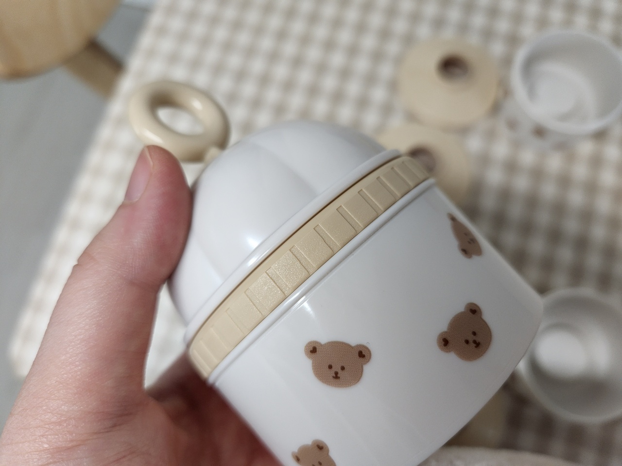 손잡이 부분과 캡 4개 그리고 분유통 3개로 이루어져 있습니다.