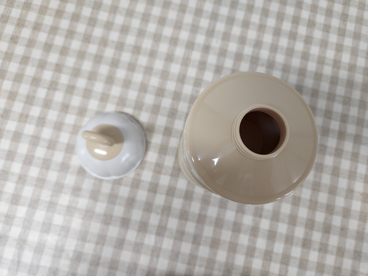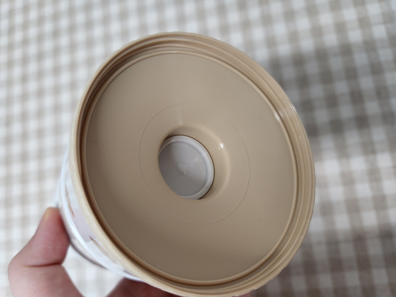 캡의 입구가 이렇게 젖병에 따르기에 적합한 작은 사이즈로 되어 있어서 분유가 샐 일이 없습니다.