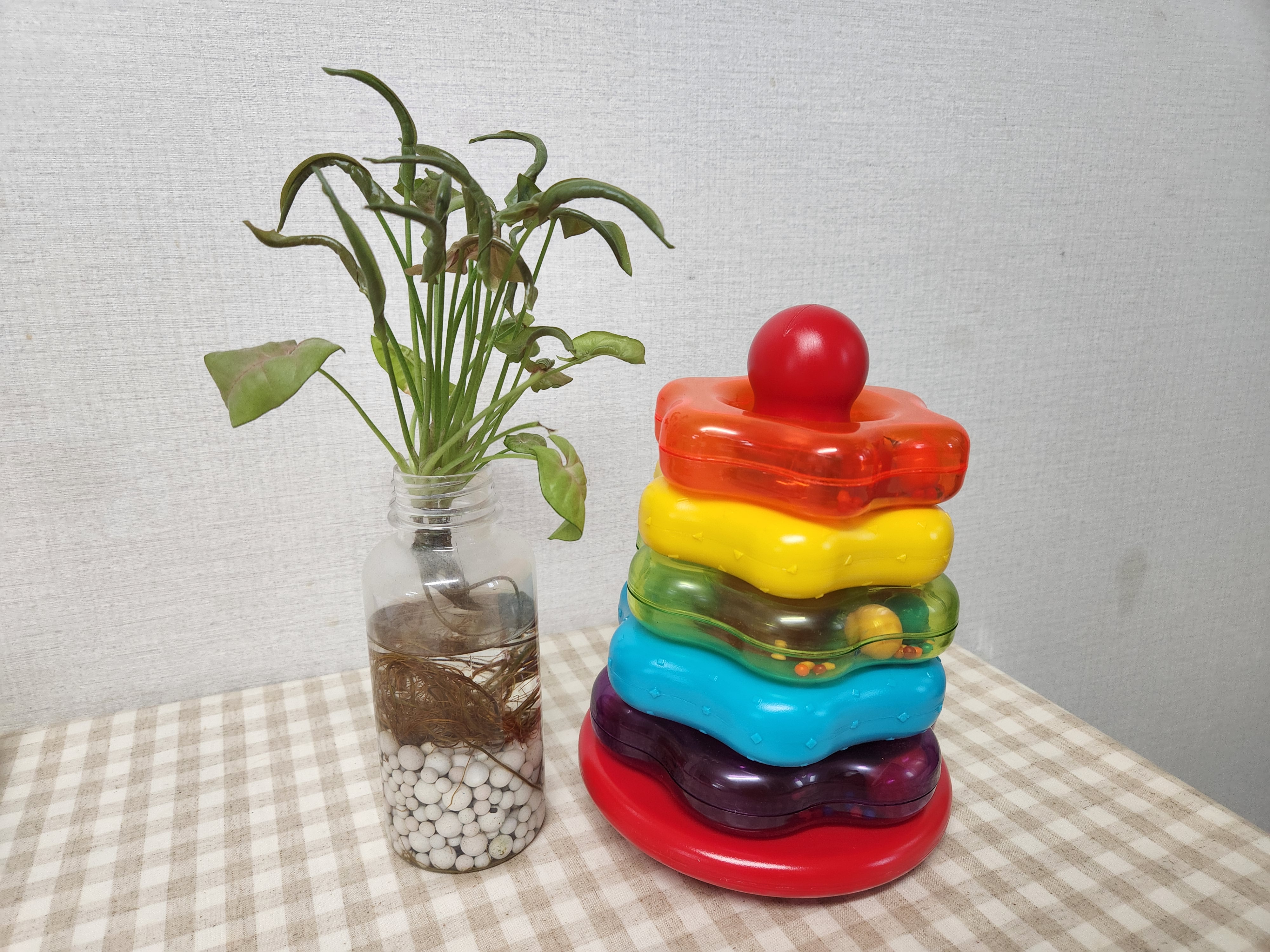제가 컵쌓기와 링쌓기 중 고민하다가 링쌓기로 결정하게 된 이유는 우선 컵쌓기보다 링쌓기의 부피가 작았기 때문이고 또 색상도 알록달록하며, 아기가 링 하나를 손으로 가지고 놀기에도 적당하다고 판단했기 때문입니다.