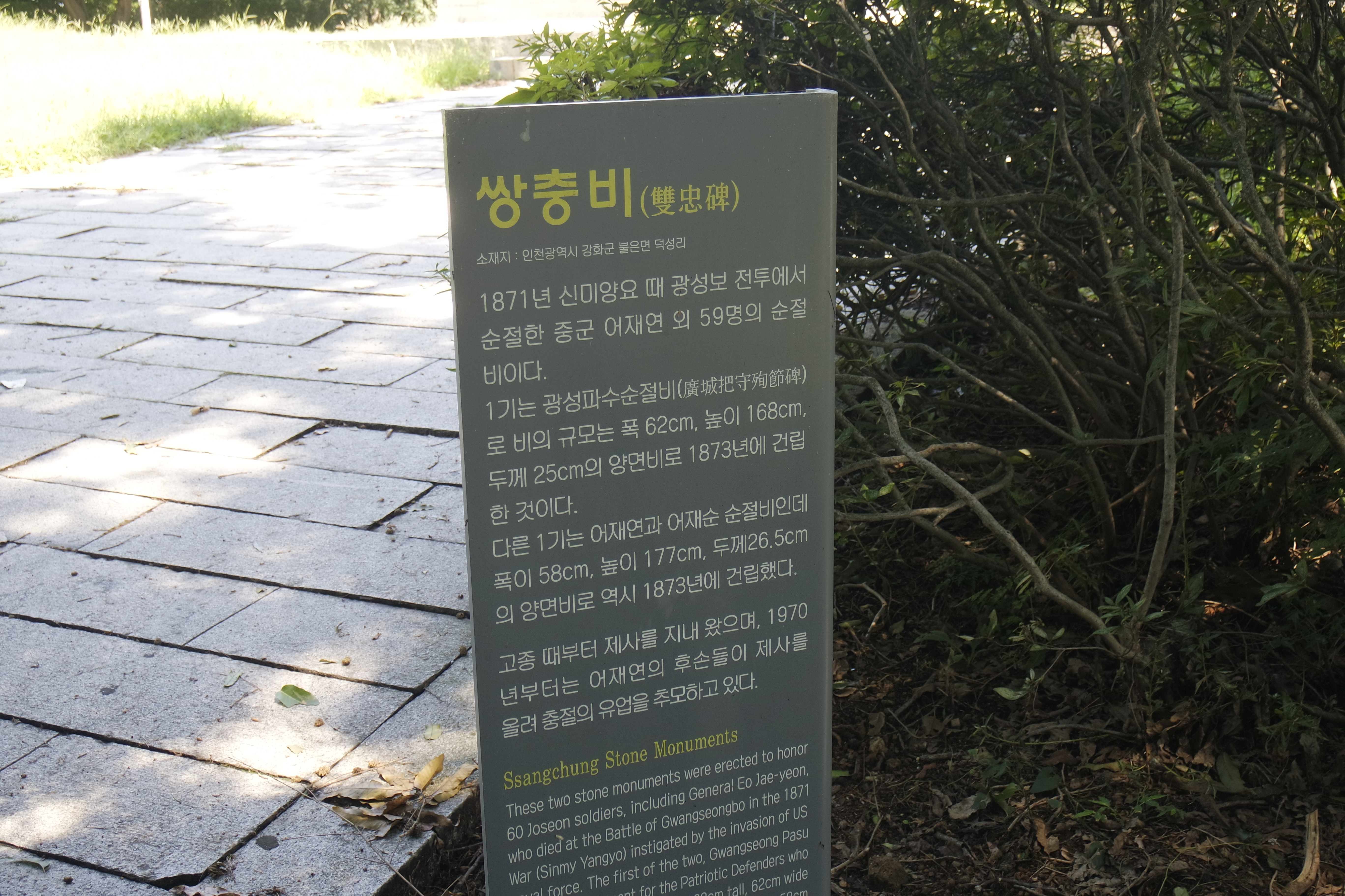 가는 길목의 첫 유적지, 멋스러운 비석인 쌍충비입니다.