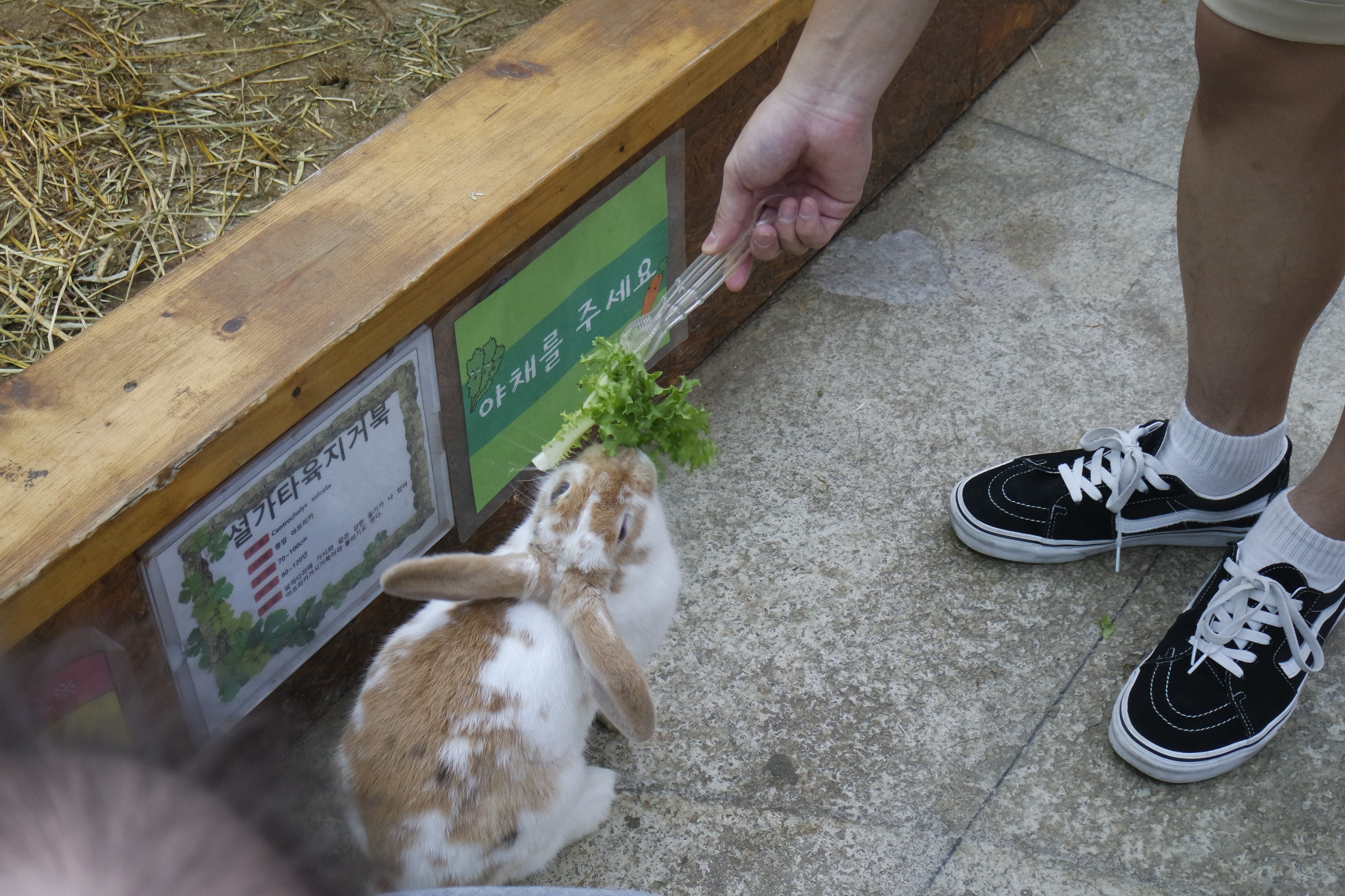 내부 체험존을 나와서 야채 먹이 중간정산을 했습니다.