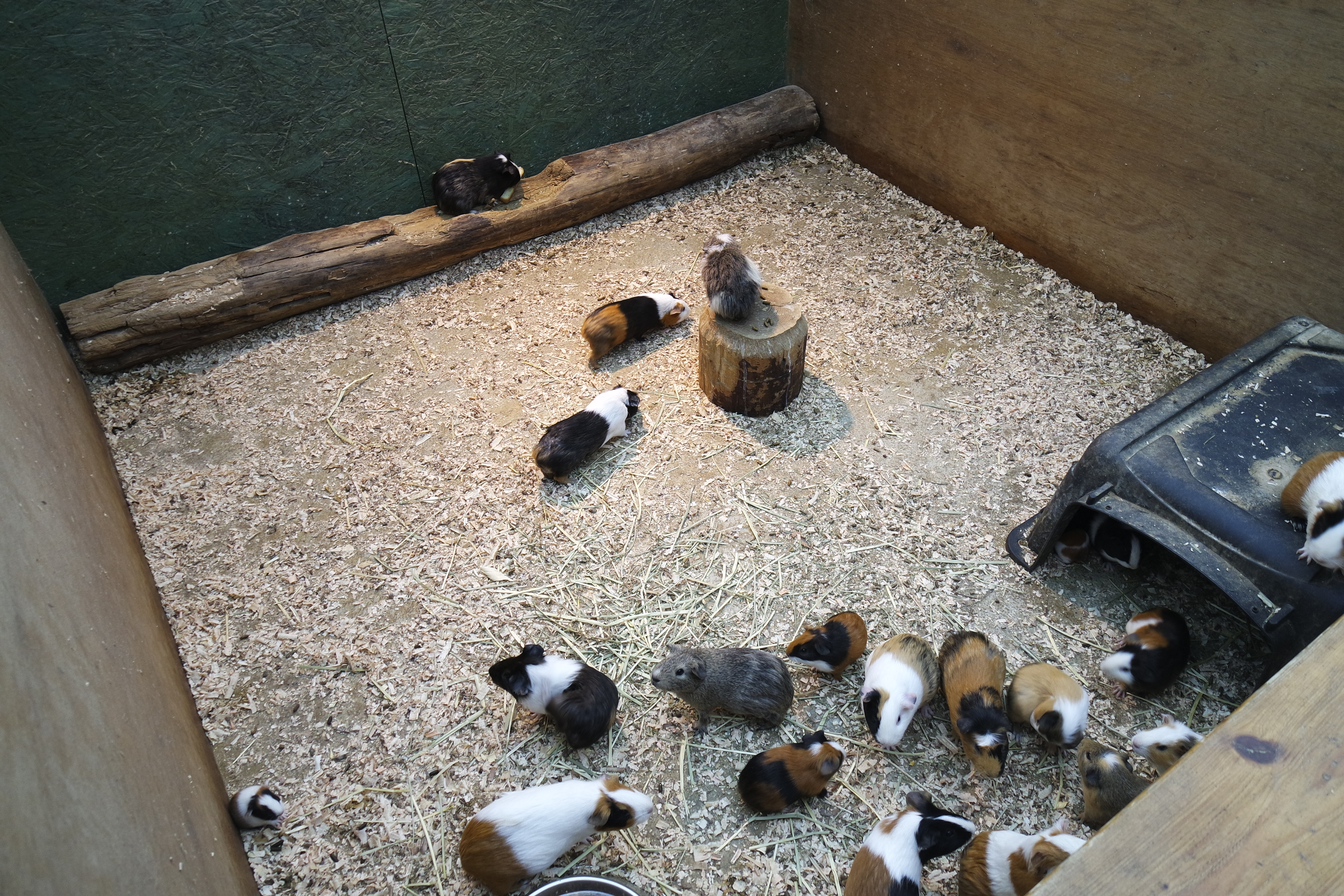 이 녀석들이 먹이가 다 떨어진 걸 어떻게 알았는지 이내 볼 일 없다고 유유히 우리 안으로 들어가 버리더라고요.