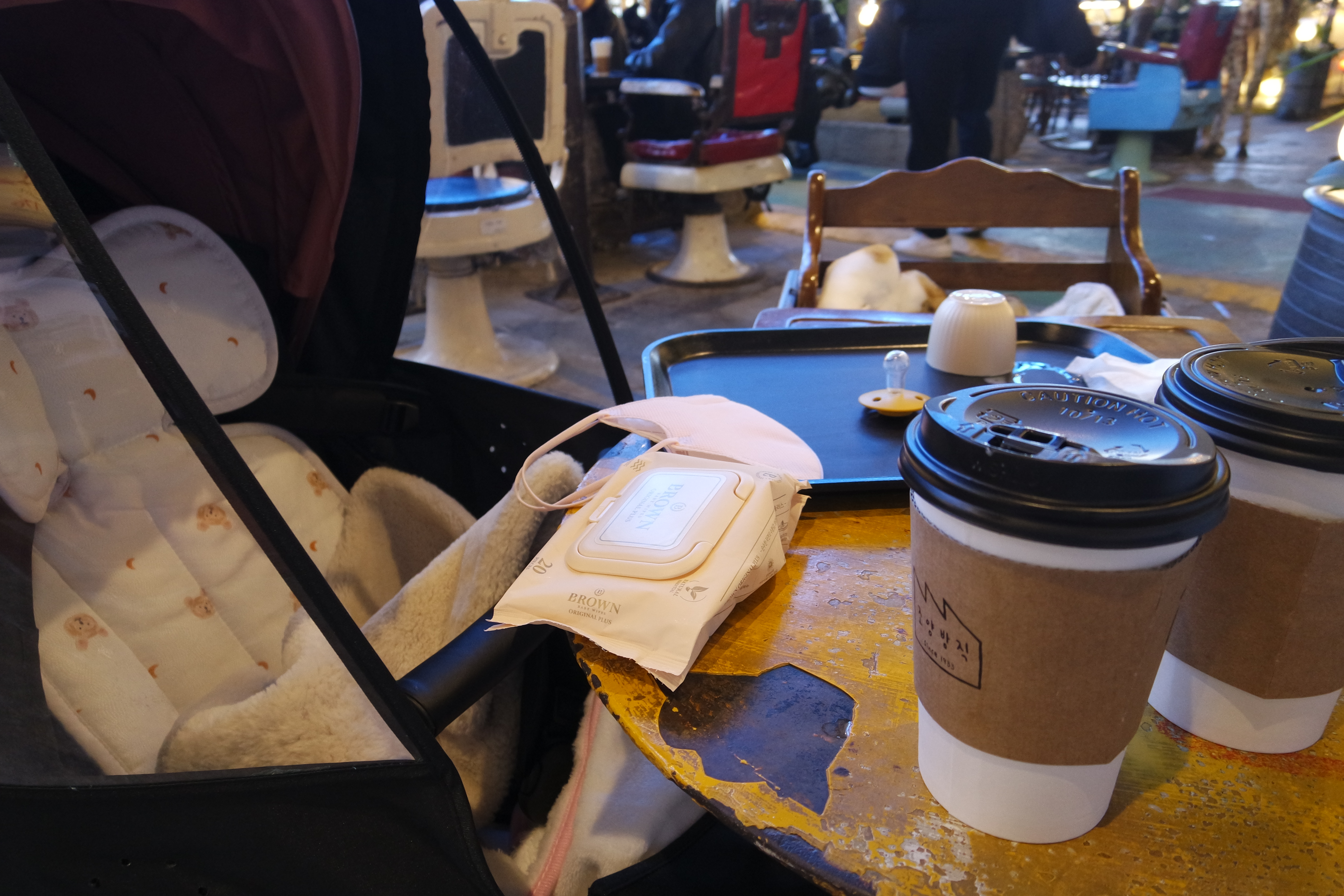 아기의자는 카페 곳곳에 비치되어 있었는데 조금만 돌아다녀도 쉽게 찾을 수 있더라구요.