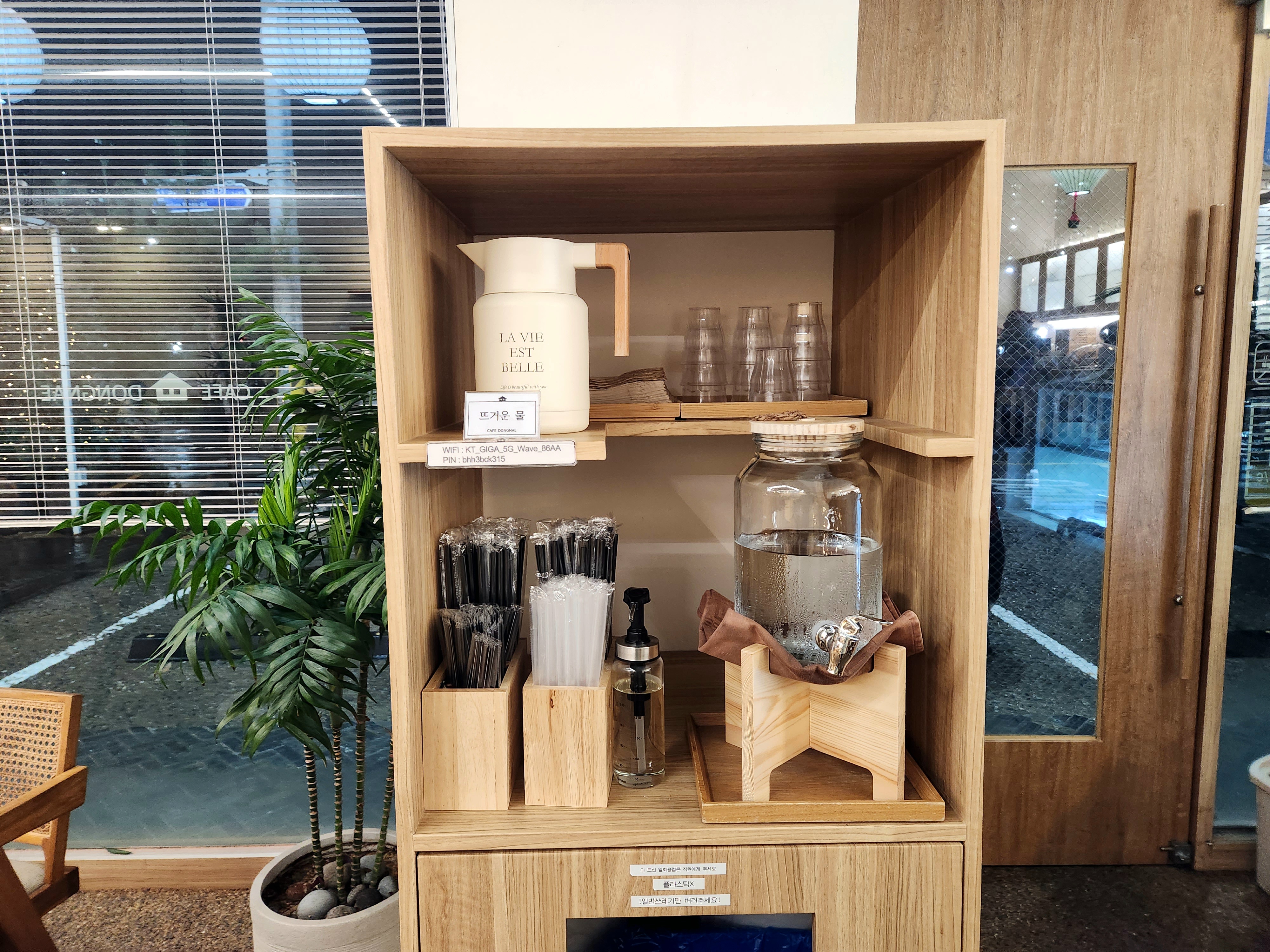문 옆쪽에 따뜻한 물을 먹을 수 있도록 작게 셀프코너가 있었어요.