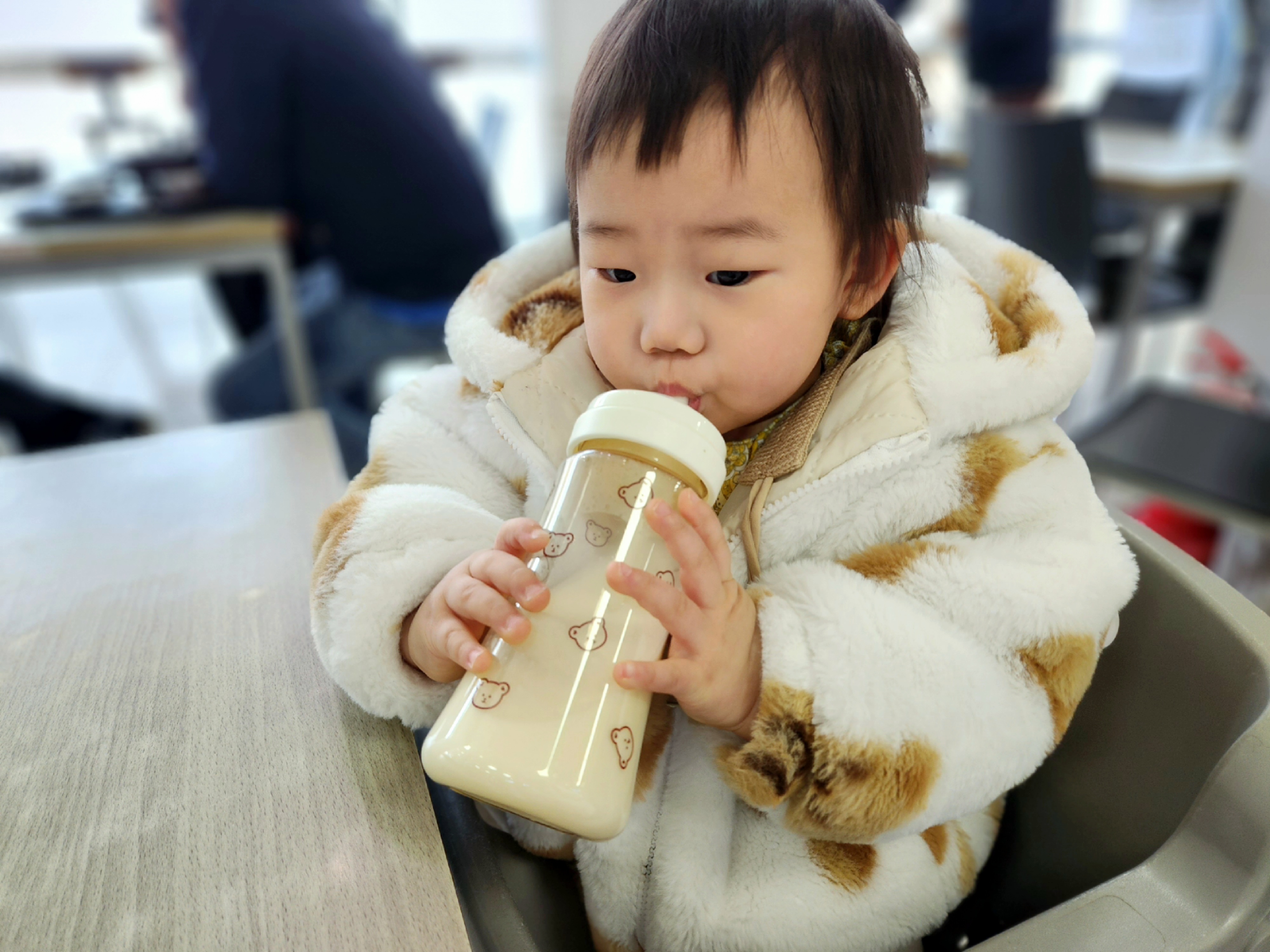 먼 길 가느라 고생 중이니 우유라떼 한 잔 드리고(푸드코트에 아기의자 있음),