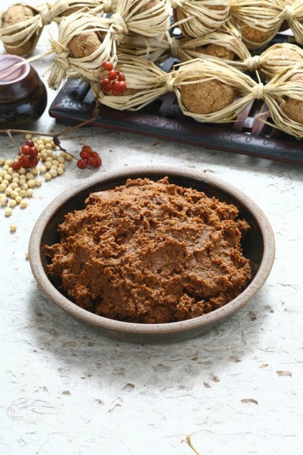 된장도 역시 재래식과 개량식이 있으며 재래식된장이 단맛과 감칠맛이 적습니다. 된장은 간장과 달리 단백질 분자의 대부분이 분해되어 펩티드 상태로 되어있는데 이것은 분자량이 큰 편의 콜로이드 입자 상태로 여러 물질을 흡착하는 작용이 있습니다. 위에서 간장은 28%의 소금을 함유하고 있다고 말씀드렸었는데요. 된장은 15~18%의 소금을 함유하고 있습니다. 하지만 고분자인 펩티드에 의해 상대적으로 짠맛이 덜 느껴집니다. 이 펩티드의 흡착 작용으로 수육의 바람직하지 않은 냄새를 가리거나 산미와 쓰고 떫은맛을 약화시키는 완충작용을 하기도 합니다. 된장은 계속 먹어도 질리지 않은 맛을 가지고 있어서 한국사람들의 일상적인 찌개나 국으로 이용되는 외에 단백질의 급원 겸 조미료로써도 그 몫을 톡톡히 해내고 있습니다.
