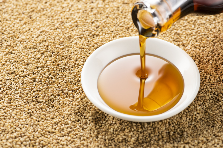 참기름은 참깨를 볶아서 짠 것으로 독특한 향미가 잇으며 우리나라에서 특히 귀하게 여기는 조미료입니다. 참깨를 볶으면 수분이 제거되면서 단백질이 응고되어 맑은 기름이 많이 짜지고 향기가 생기게 됩니다. 하지만 지나치게 볶으면 색이 검어지고 쓴맛을 냅니다. 참기름은 불포화지방산인 리놀레산과 리놀렌산 함량이 높으므로 영양적으로도 도움이 됩니다.